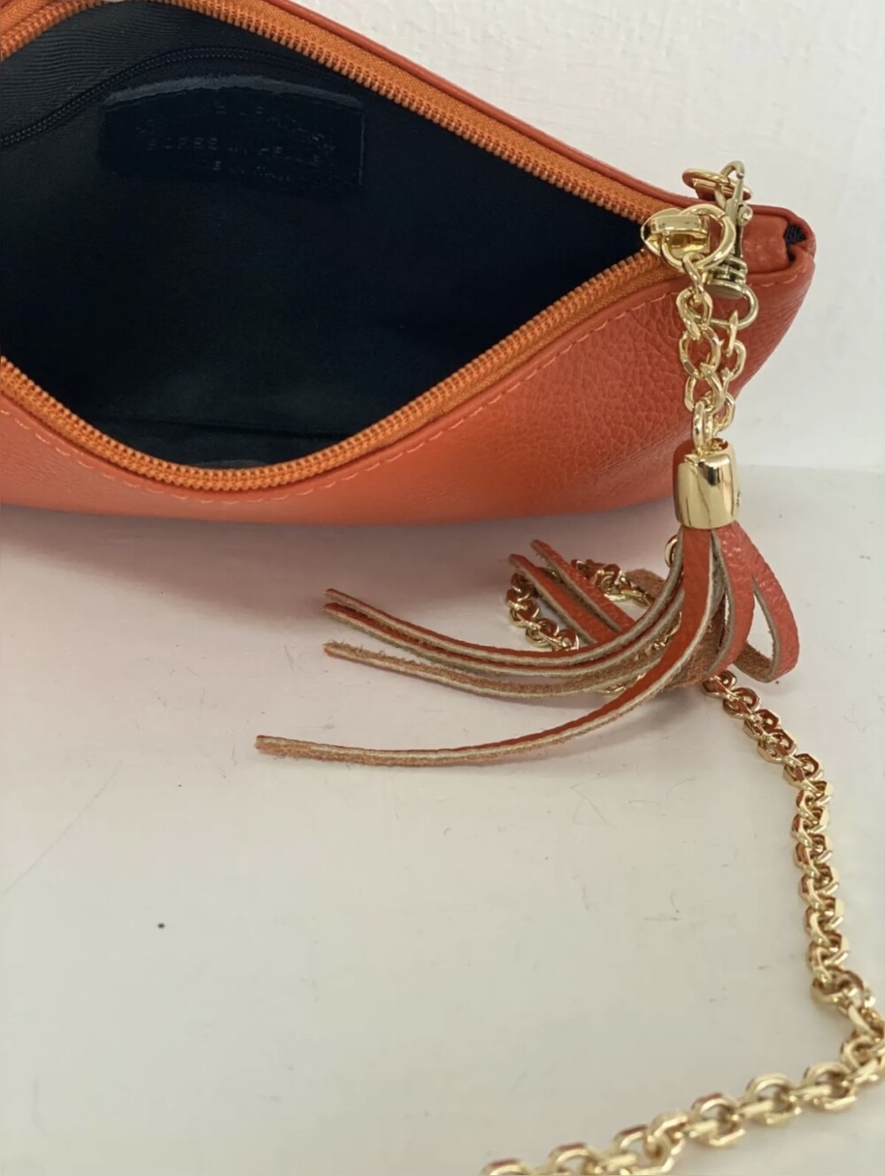 Mooi tasje met goudkleurige lange ketting en kwastje