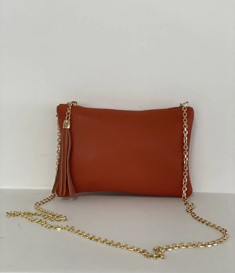 De Enveloptas beige leer met kwastje en goudkleurige ketting is tijdelijk uitverkocht. Ontvang een e-mailbericht zodra dit product weer leverbaar is