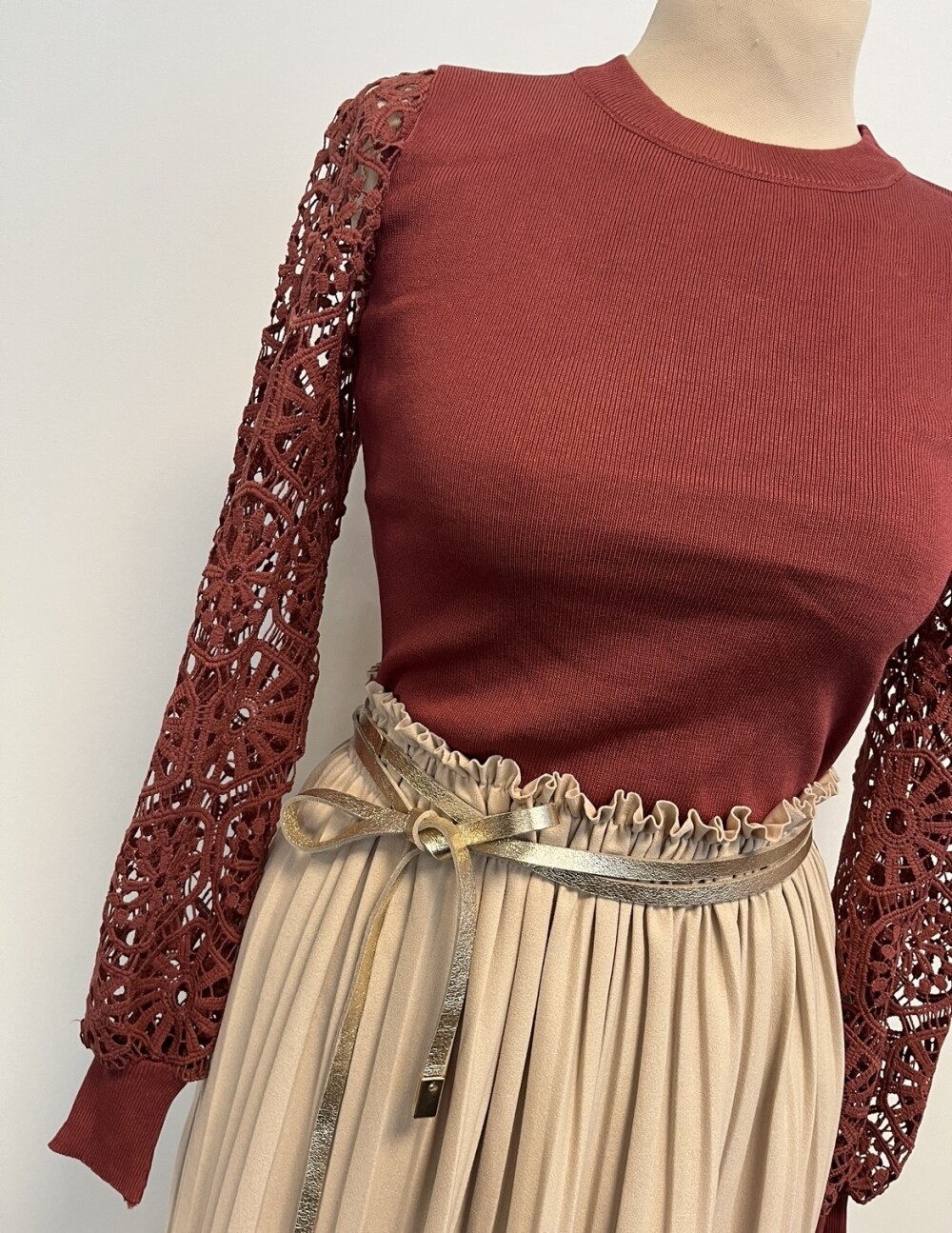 DIt goudkleurige wikkelriempje is op iedere gewenste maat te dragen