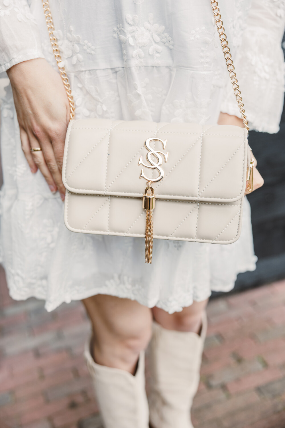 Mooi tasje met goudkleurige details en ketting