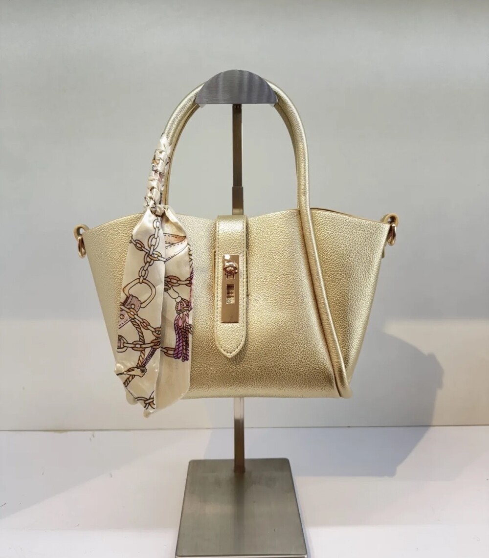 Mooie handtas leer met sjaaltje goud