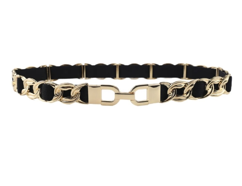 Deze mooie elastischer riem heeft goudkleurige schakels