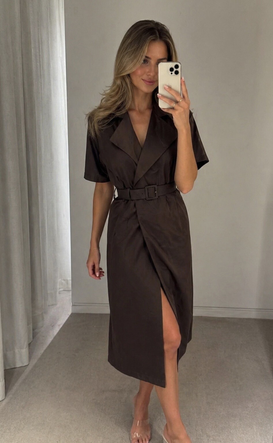 Midi jurk rever bruin