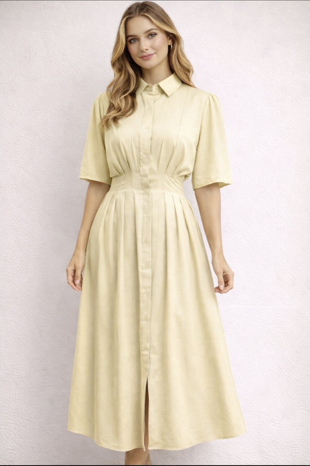 40%coton50%polyester10%lin Prachtige taille met gestikte plooitjes op de achterkant is de band elastisch in de taille