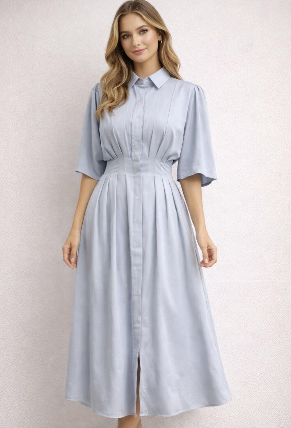 Prachtige taille met gestikte plooitjes , op de achterkant is de band elastisch in de taille