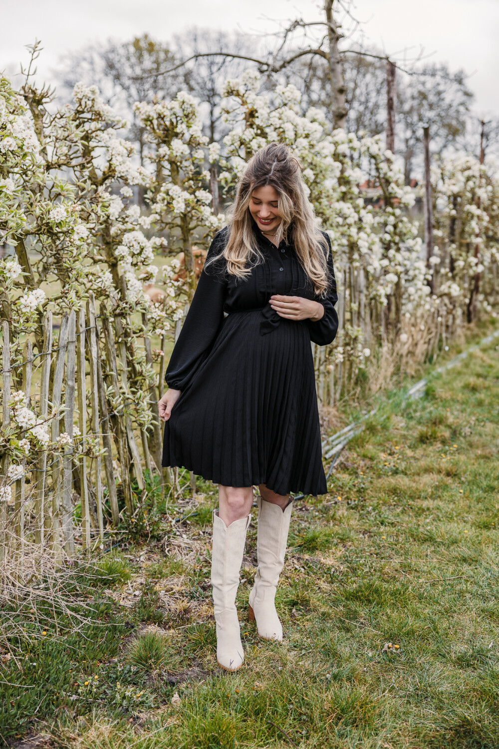 Deze mooie jurk hebben we laten maken in een fijne knielengte