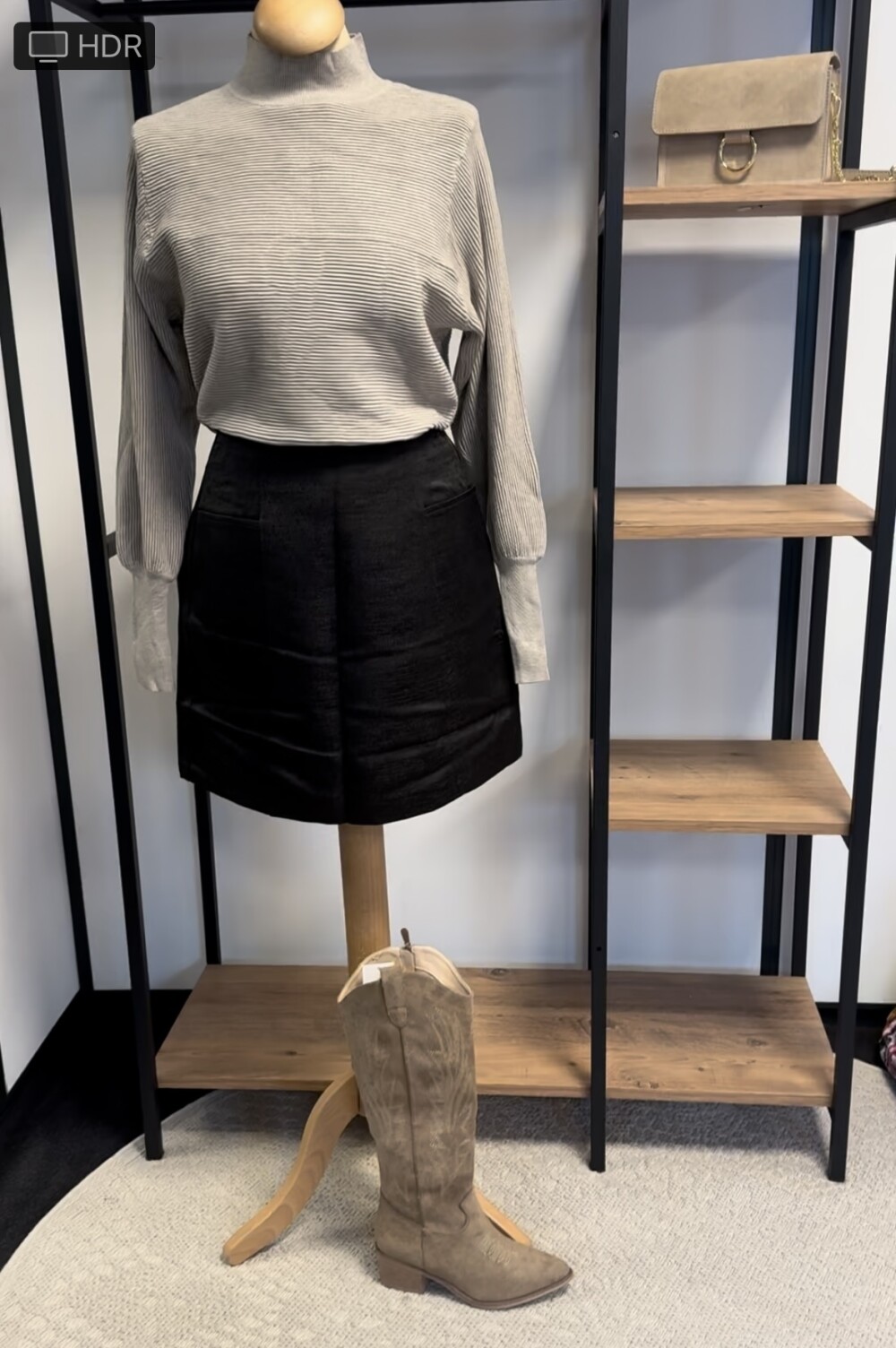 Dit prachtige rokje met chique glans is ongeveer 44 cm lang