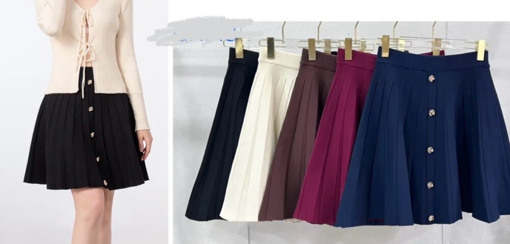 Fijngebreid rokje met goudkleurige knoop 4 kleuren
