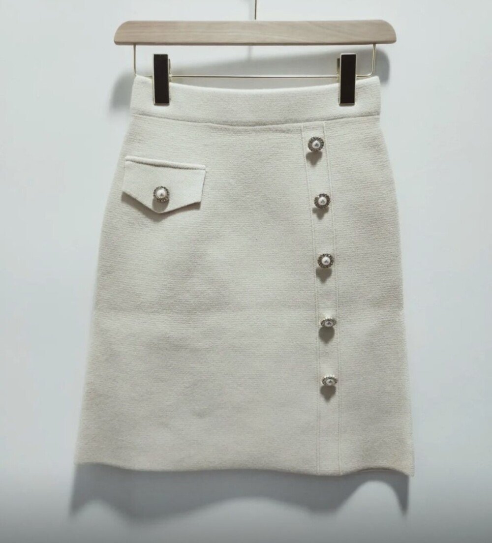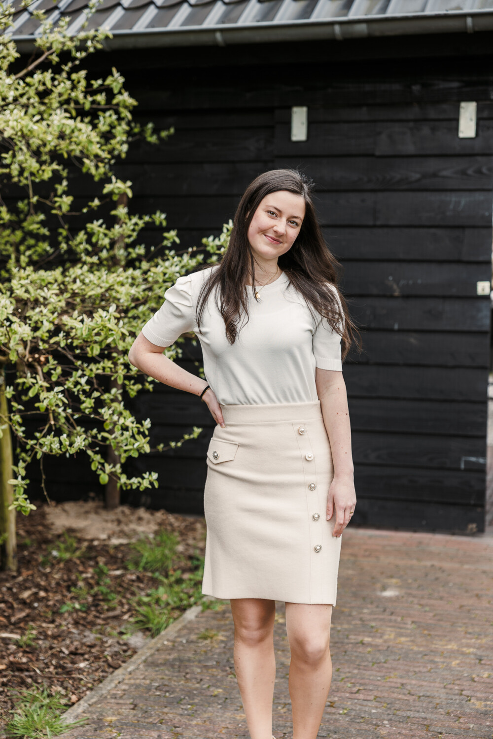 De Fijngebreide rok zand met knoopdetails is tijdelijk uitverkocht. Ontvang een e-mailbericht zodra dit product weer leverbaar is