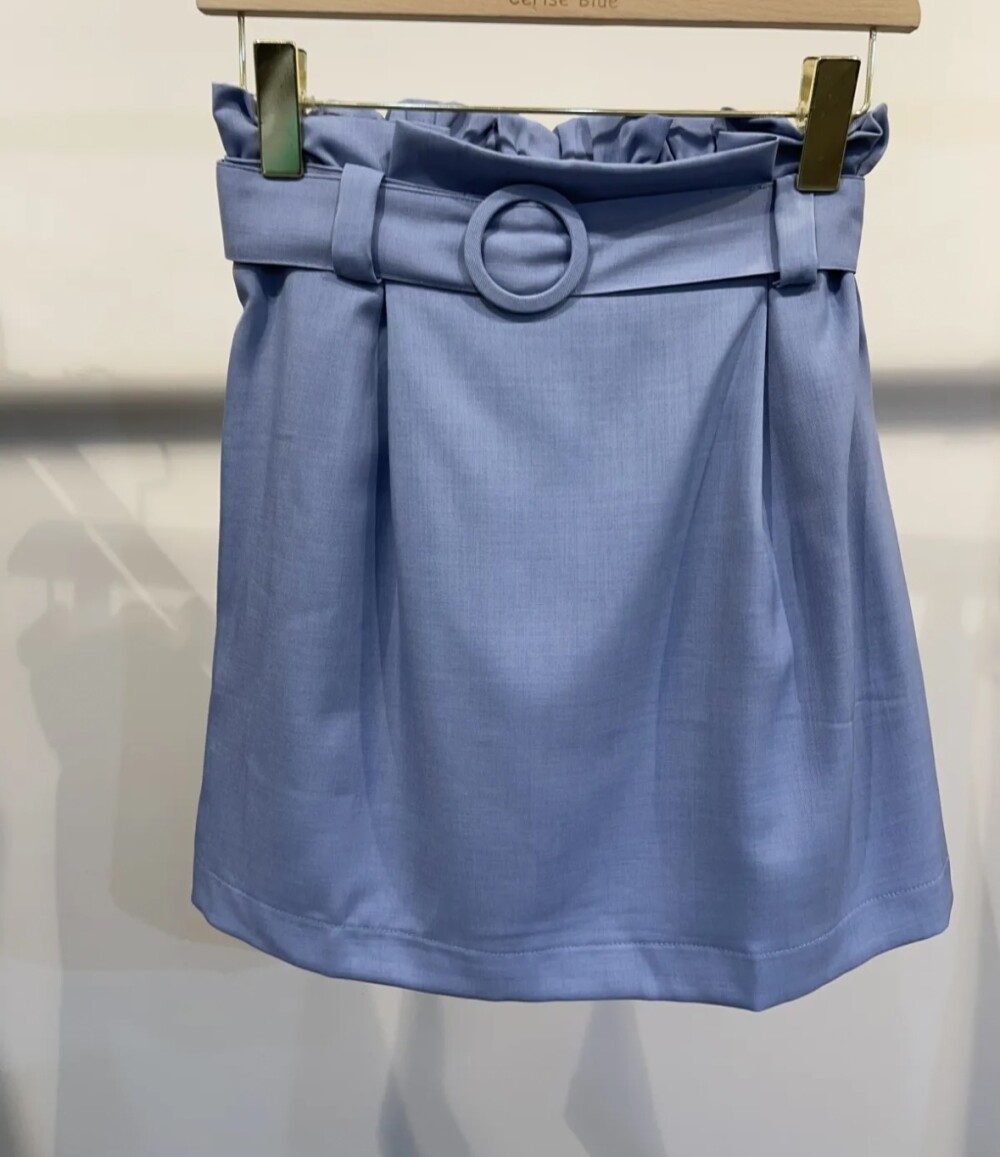 Leuk lichtblauw rokje met ceintuurtje en plooitjes bij de boord