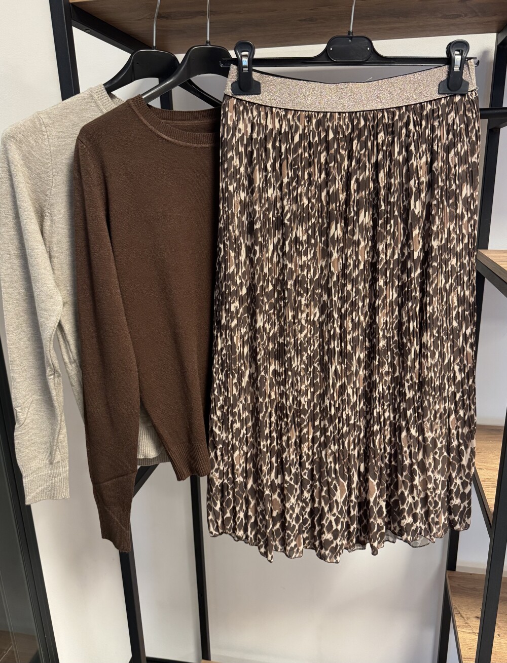 De Midi rok in warme print in bruintinten en lurex boord is tijdelijk uitverkocht. Ontvang een e-mailbericht zodra dit product weer leverbaar is