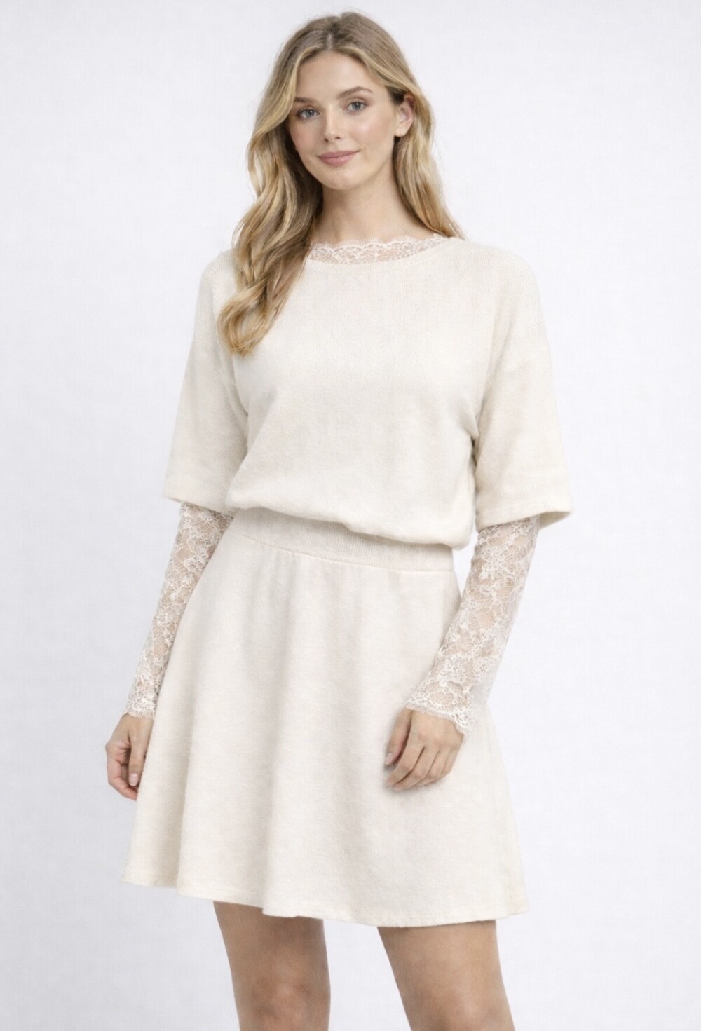 Als je de hals iets te breed vindt, is het ook leuk met het kanten shirt eronder