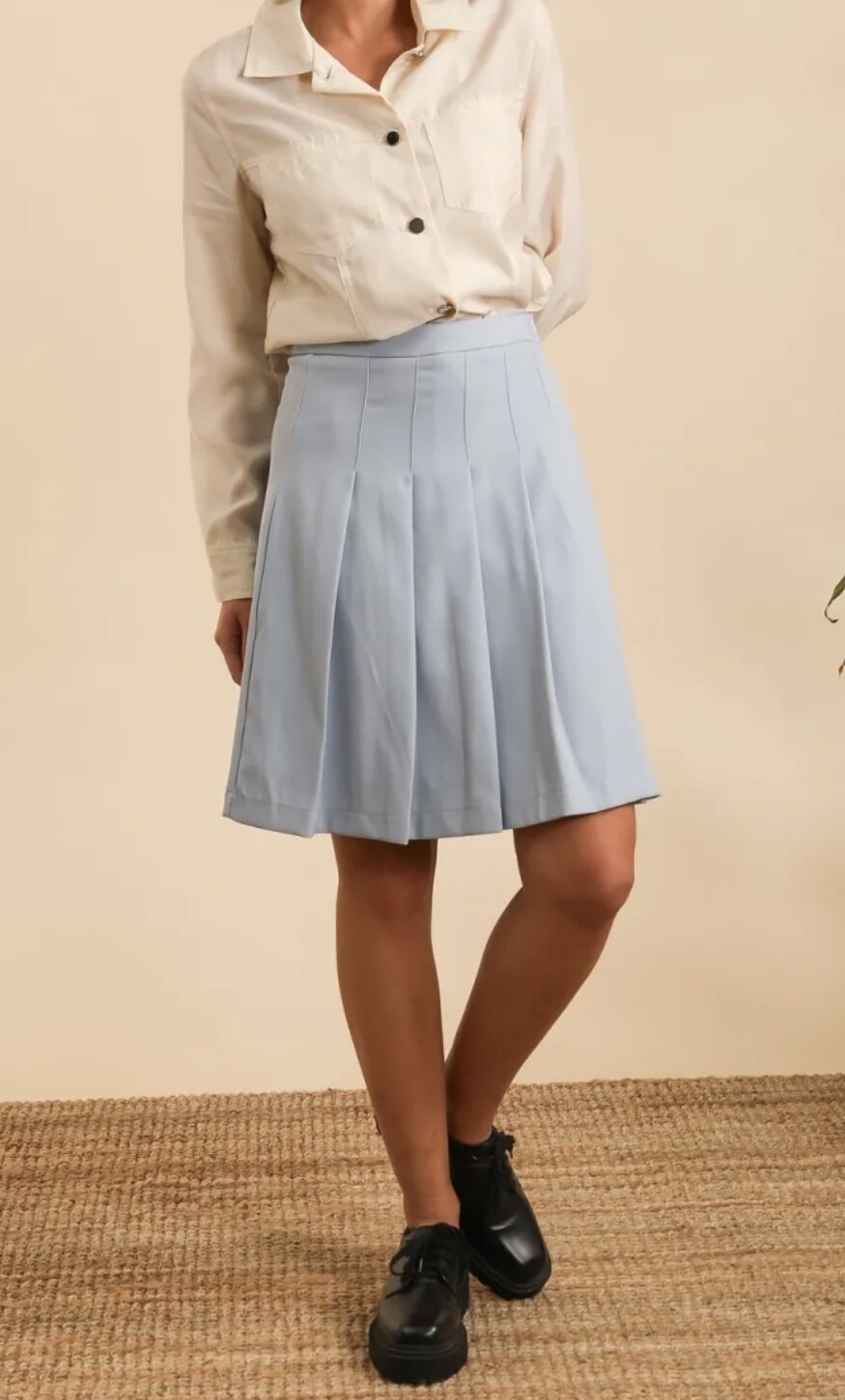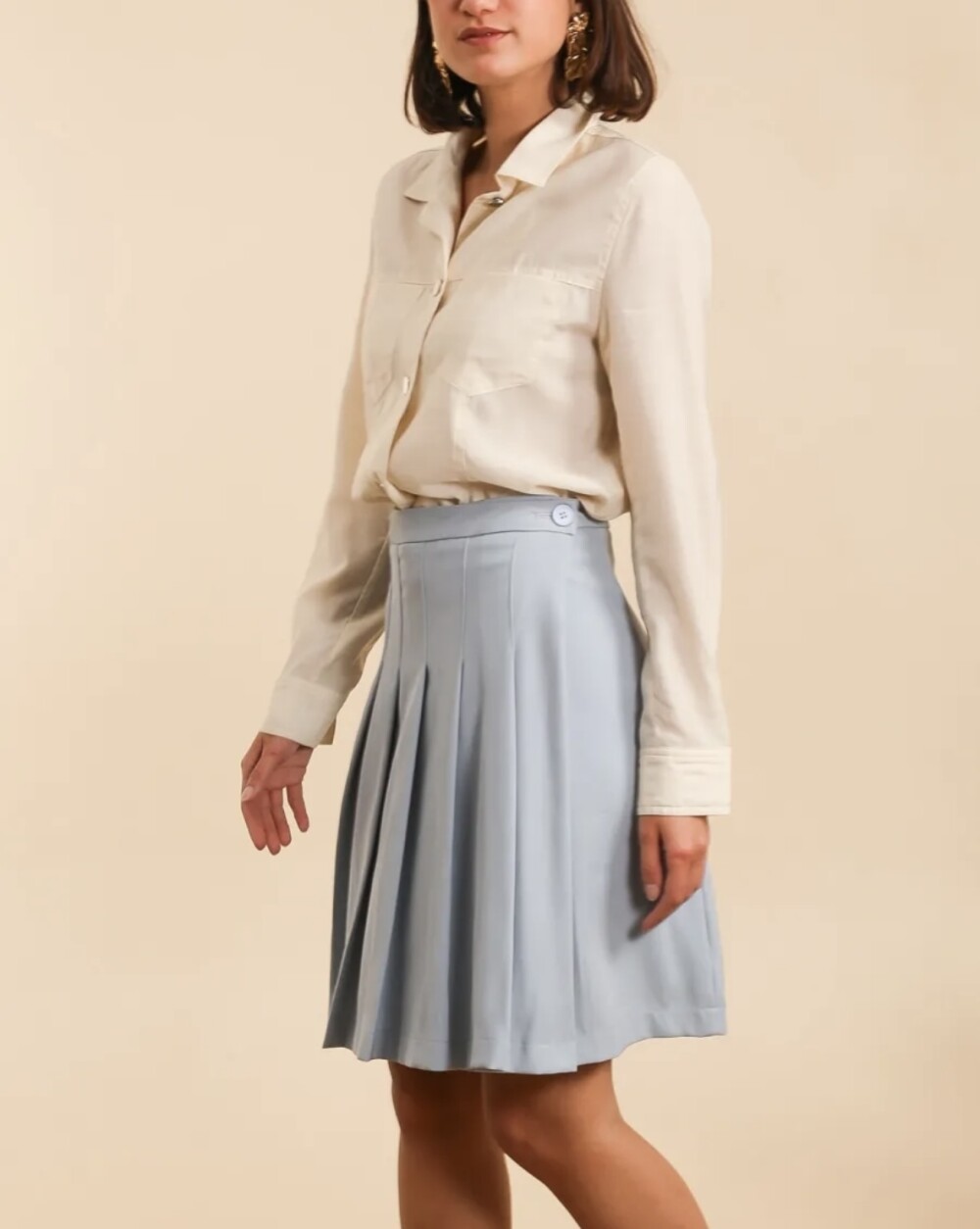 Dit prachtige rokje heeft een overslag,aan de bovenkant vastgezet met knoop