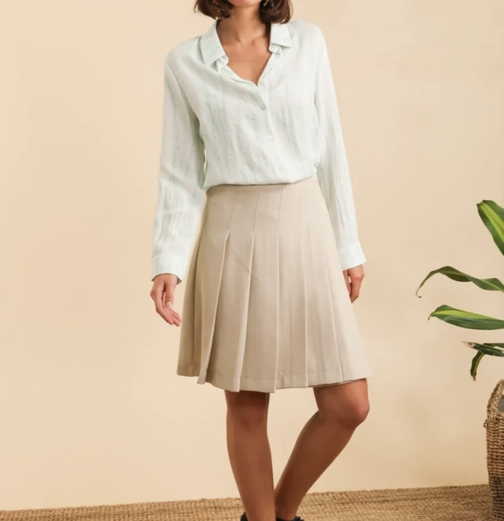 Dit prachtige rokje heeft een overslag,aan de bovenkant vastgezet met knoop