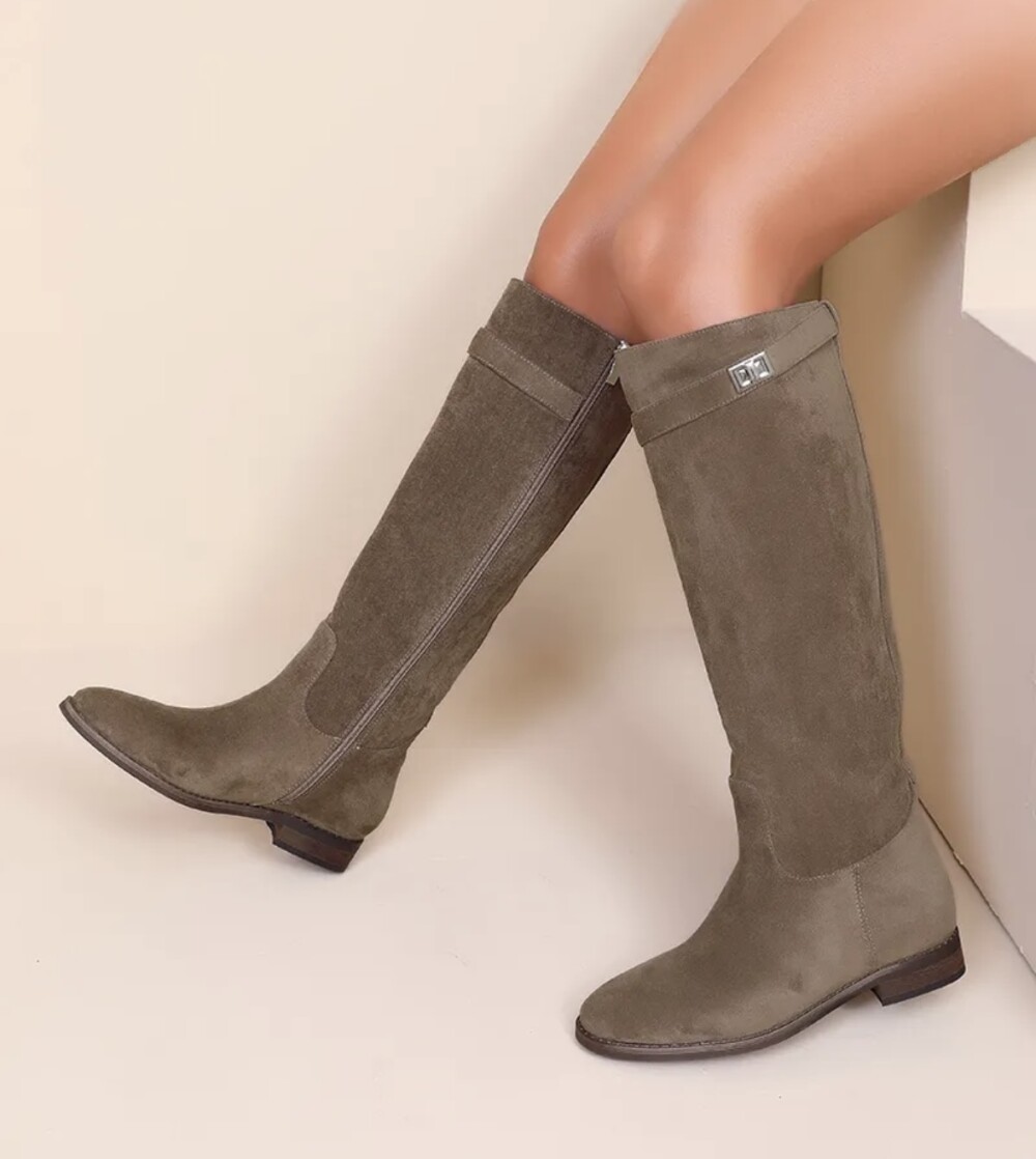 De Prachtige beige suèdelook laars met plat hakje is tijdelijk uitverkocht. Ontvang een e-mailbericht zodra dit product weer leverbaar is