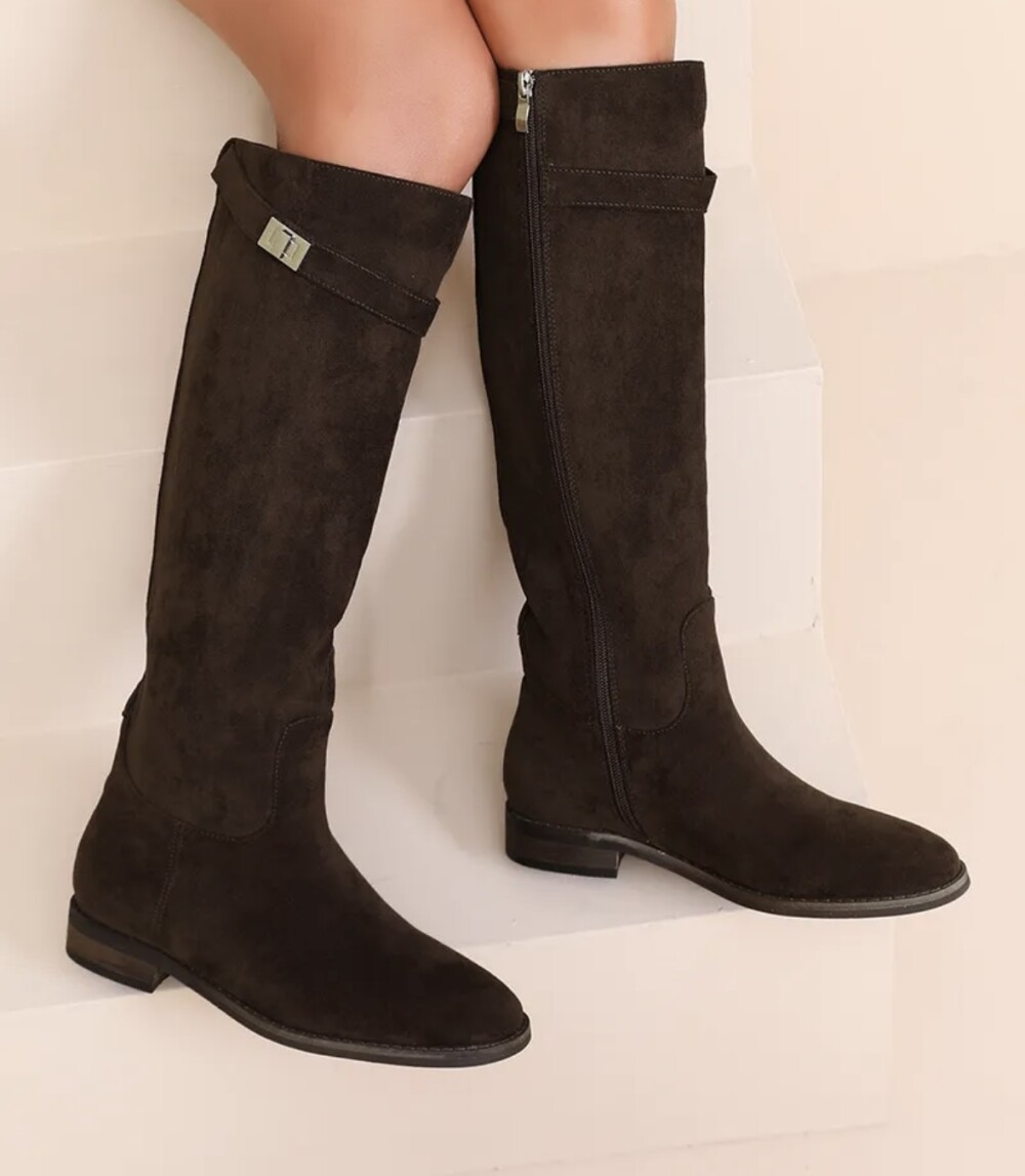 De Prachtige bruine suèdelook laars met plat hakje is tijdelijk uitverkocht. Ontvang een e-mailbericht zodra dit product weer leverbaar is