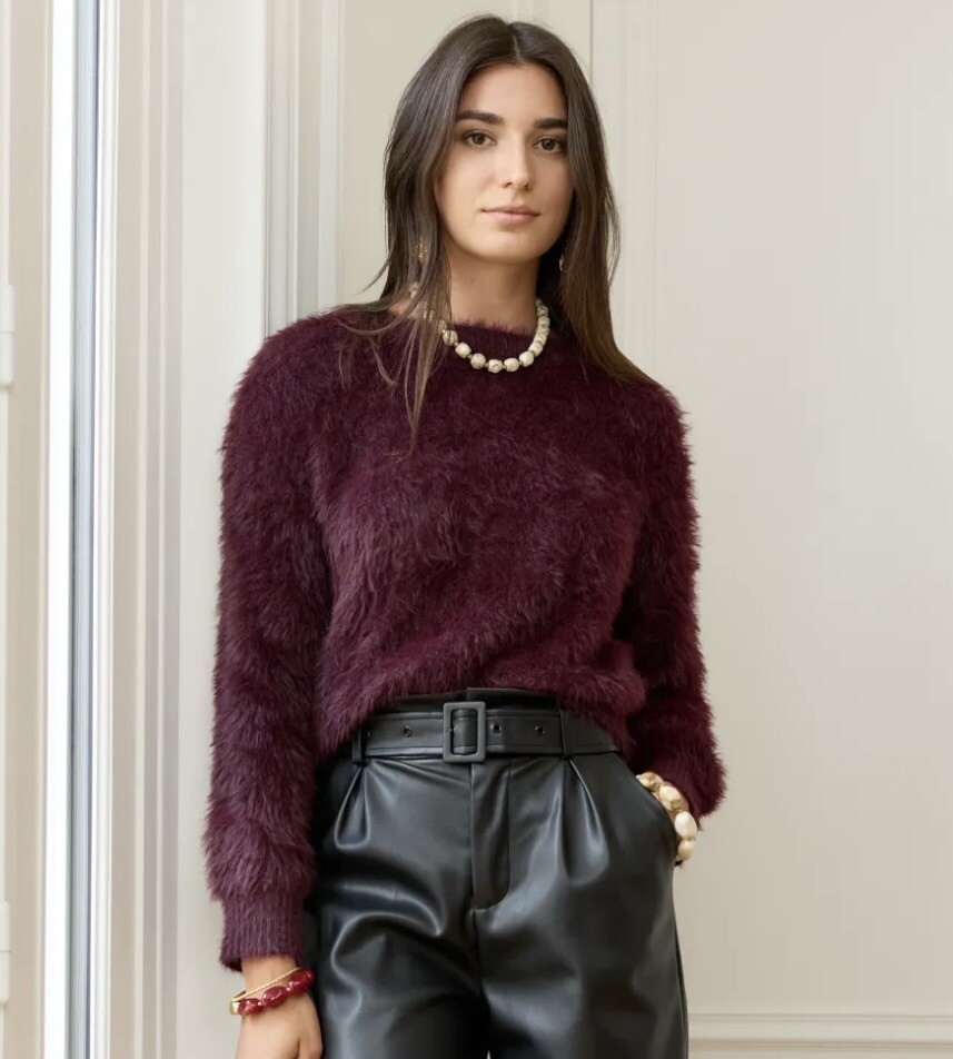 Heerlijk Bordeaux fluffy truitje met lange mouw