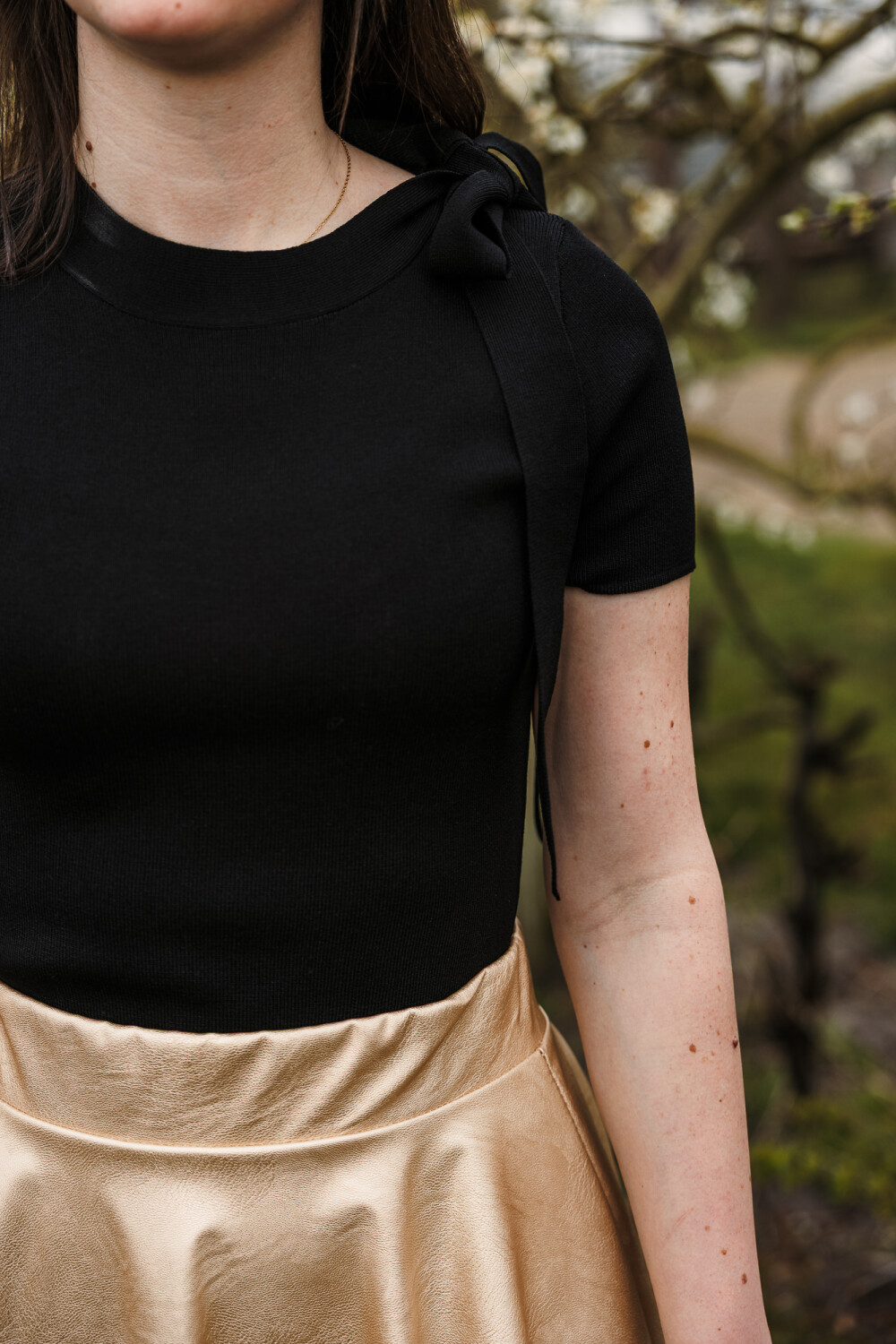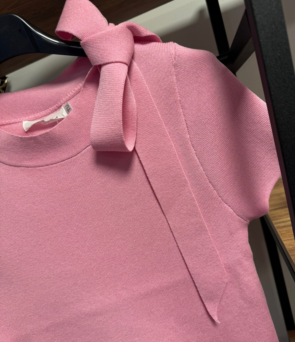 Prachtige truitje met detail dat boven aan de hals zelf gestrikt kan worden
