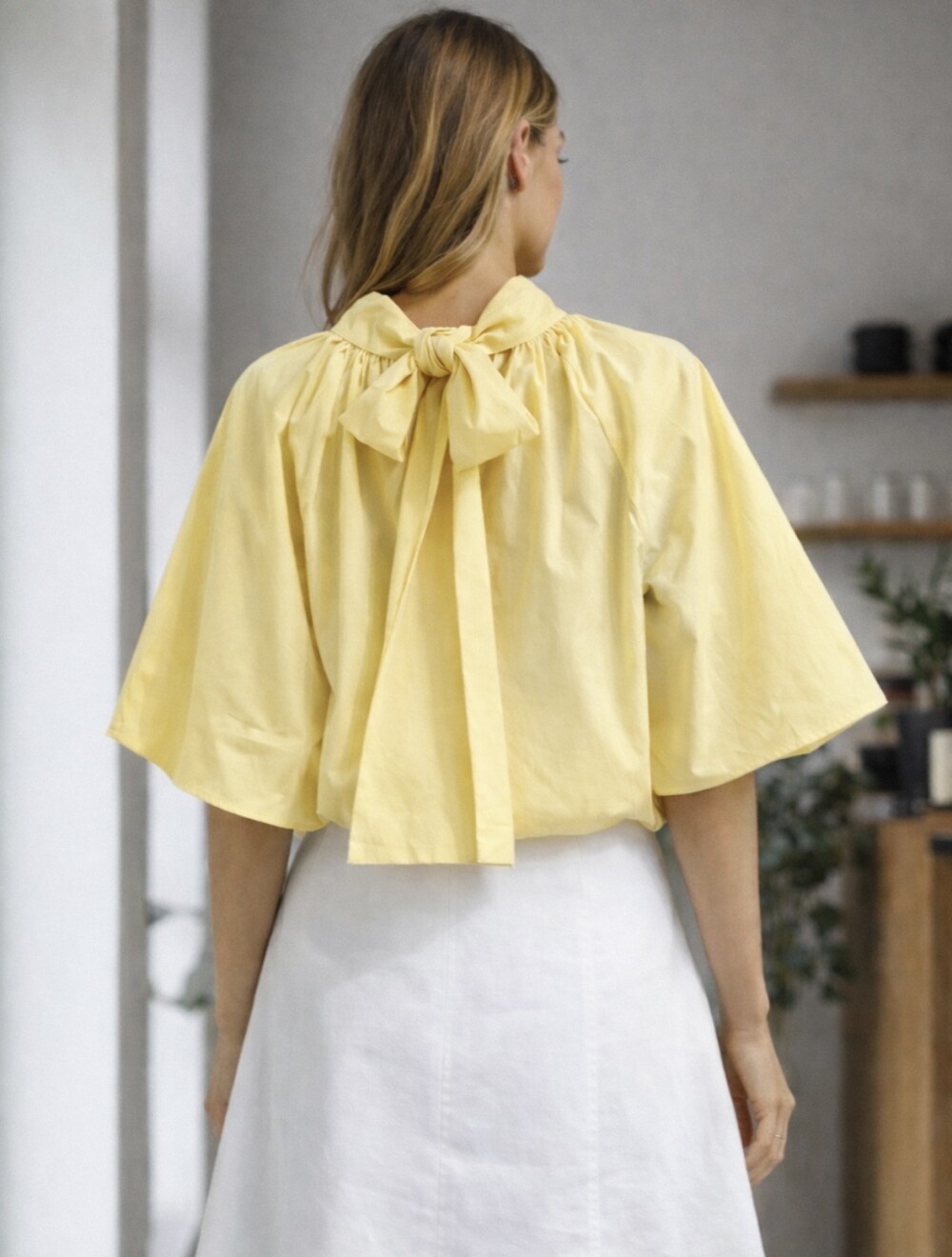Prachtige gele top met strik in de nek